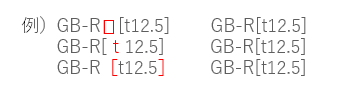 スペースの有無や場所が一致していない場合、エラーとして表示されます。