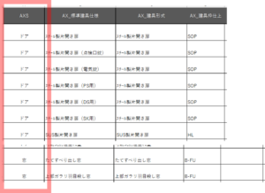 A.必須列を追加してください。AXS列にはカテゴリ名(ドア・窓・壁など)を入力します。
