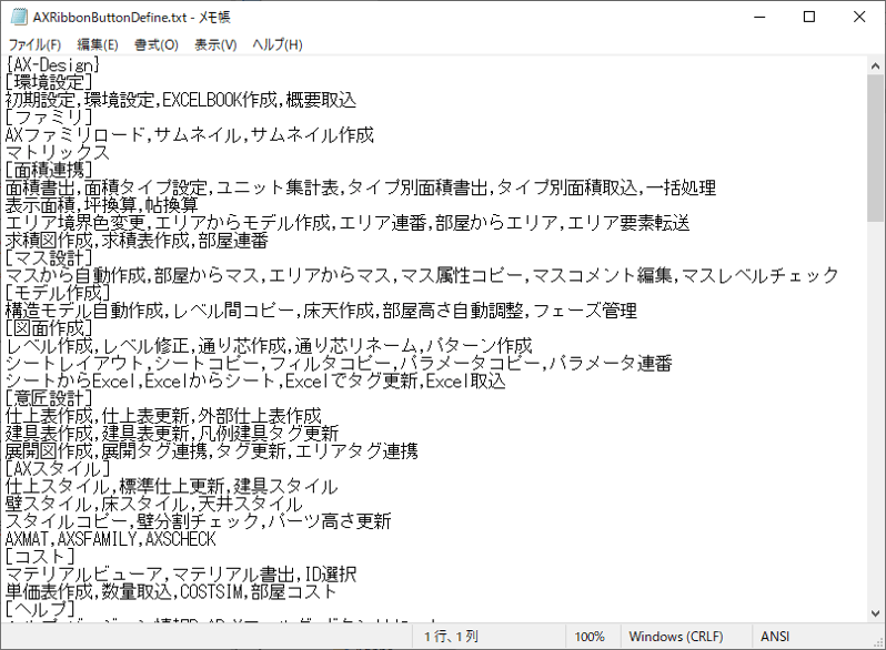 AXRibbonButtonDefine.txt の名前を変えると認識されません。