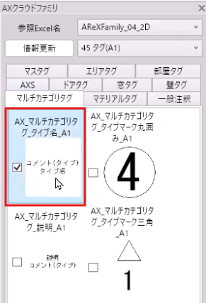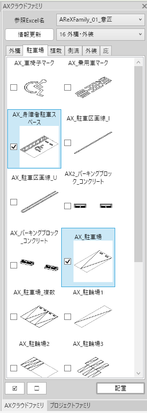 ■AXクラウドファミリパレットで一括選択>プロジェクトファミリパレットでまとめて配置 -